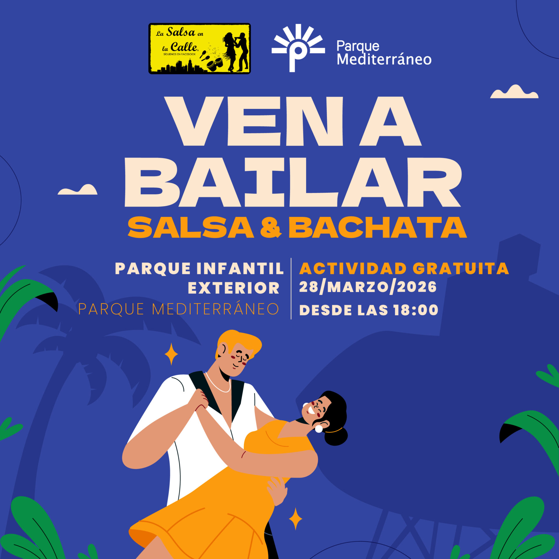 Este sábado 28 de marzo, a partir de las 18:00 h, tienes una cita imprescindible para disfrutar del mejor ambiente y dejarte llevar por el ritmo. Te esperamos para una tarde de baile con salsa y bachata, pensada para todos los públicos y totalmente gratuita.